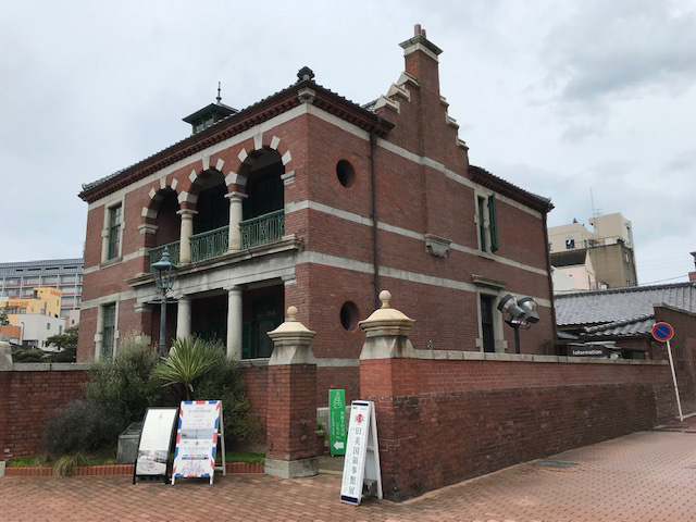 煉瓦造2階建、延床面積170.6平方メートル、桟瓦葺。外観は赤煉瓦を基調とし、建物正面の連続アーチや列柱を持つベランダと、段々状の妻壁から伸びるなんとも煙突がユニーク。エントランス上に古写真から復元されたというライオンと一角獣の意匠が見られるが、英王室由来であろうか、興味深い。