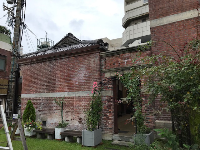 煉瓦塀に黒い瓦の対比が、明治という時代を如実に表している。